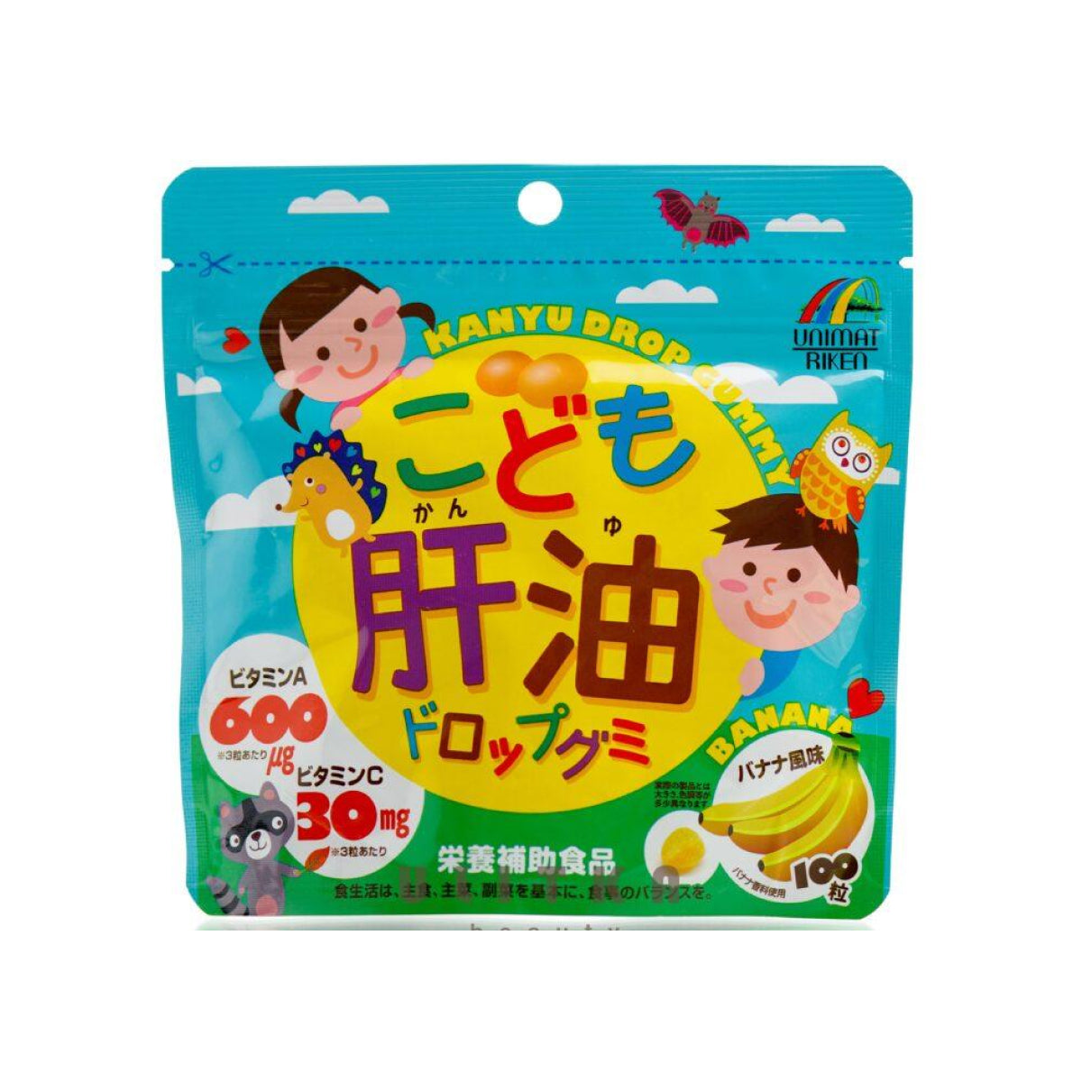 UNIMAT RIKEN KIDS VITAMINS Дитячі вітаміни А, D, В2, В6, С + Омега 3 зі смаком банана, 100 шт (100 шт)